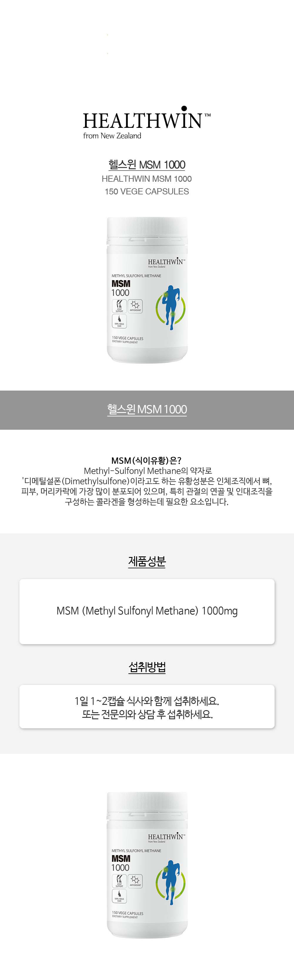 (3Åë) ´ºÁú·£µå ÇコÀ© MSM ½ÄÀÌÀ¯È² 1000mg 150ĸ½¶