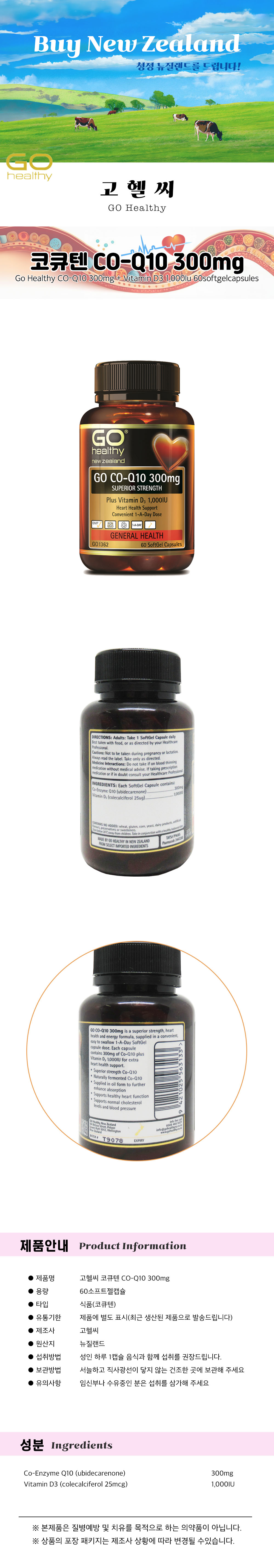 ´ºÁú·£µå °íÇï¾¾ ÄÚÅ¥ÅÙ 300mg + ºñŸ¹Î D3 60º£Áöĸ½¶